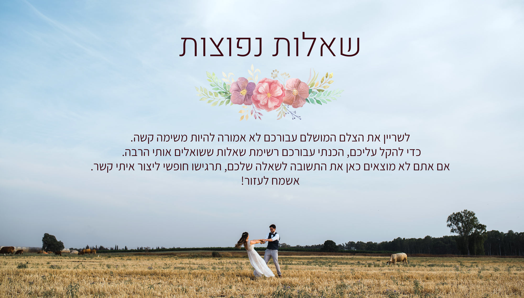לשריין את הצלם המושלם עבורכם לא אמורה להיות משימה קשה. כדי להקל עליכם, הכנתי עבורכם רשימת שאלות ששואלים אותי הרבה.